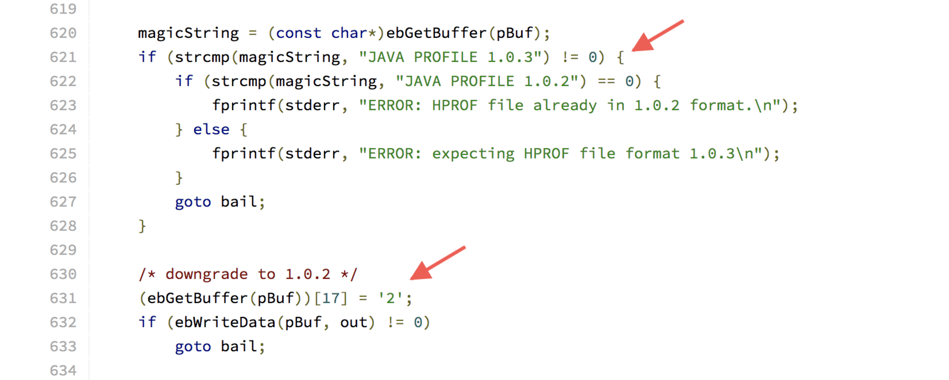 首先判断当前hprof文件版本号是否是”JAVA PROFILE 1.0.3”,如果不是则报错,反之将版本信息从”JAVA PROFILE 1.0.3”降为”JAVA PROFILE 1.0.2”。